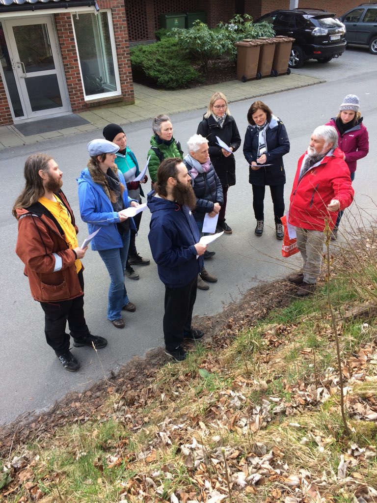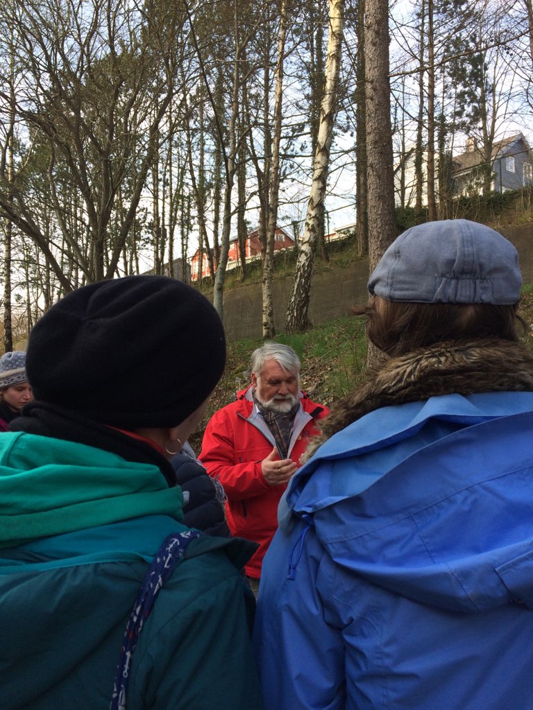 Det var 12 ivrige deltakere som møtte opp utenfor Strømvik kolonihage og ble med på tur med vår kunnskapsrike turleder Olav Balle.