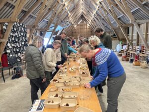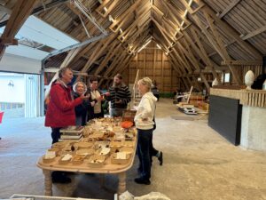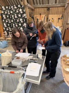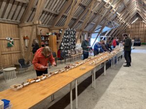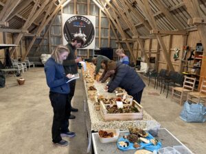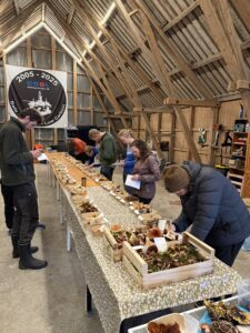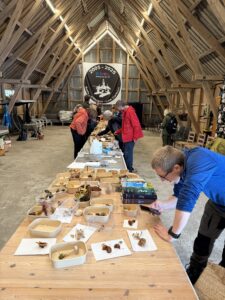 Alle hjalp til med å lage utstilling på låven. Pensumsoppene ble lagt på et langt bord. De ble navnsatt og alle fikk anledning til å studere dem.