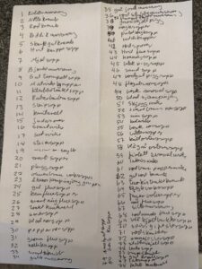 Så snudde vi lappene slik at de som ønsket det kunne teste om de kjente igjen pensumsoppene. Vi hadde funnet 80 pensumarter.